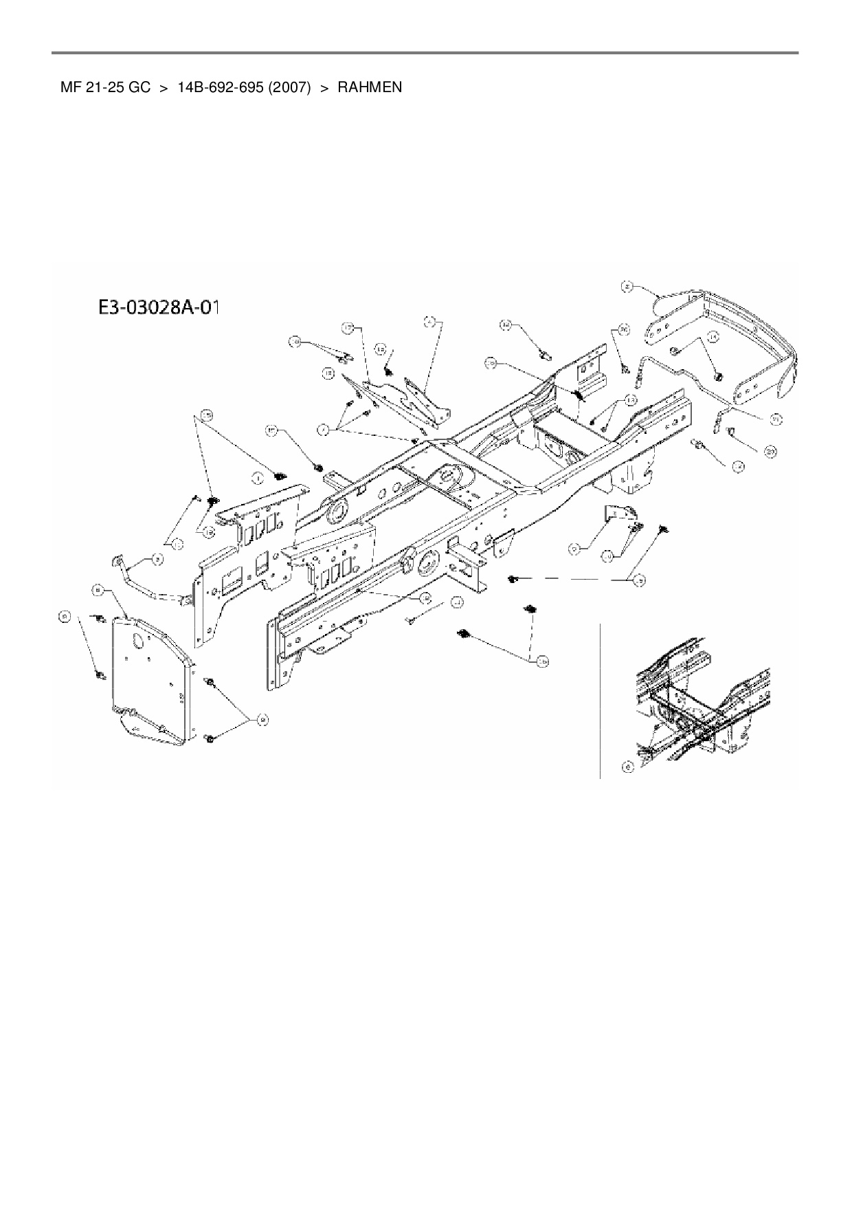 Ersatzteile für Gartentraktor Massey Ferguson MF 21-25 GC aus der Zeichnung Rahmen: