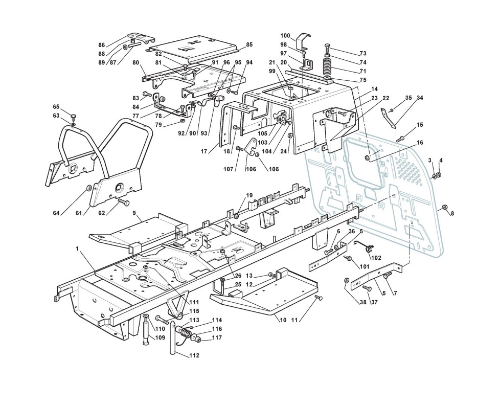 Zeichnungen von Alpina Aufsitzmäher ONE 102 YH mit Geräte Nr. 299931536/YA ab Baujahr 2007