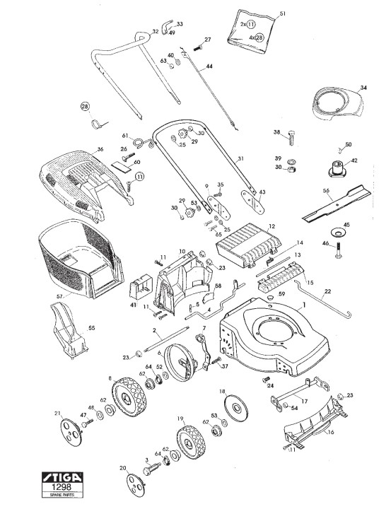 Zeichnung von Stiga Benzin-Rasenmäher ab 2001 Combi 45 (Geräte Nr 344503):