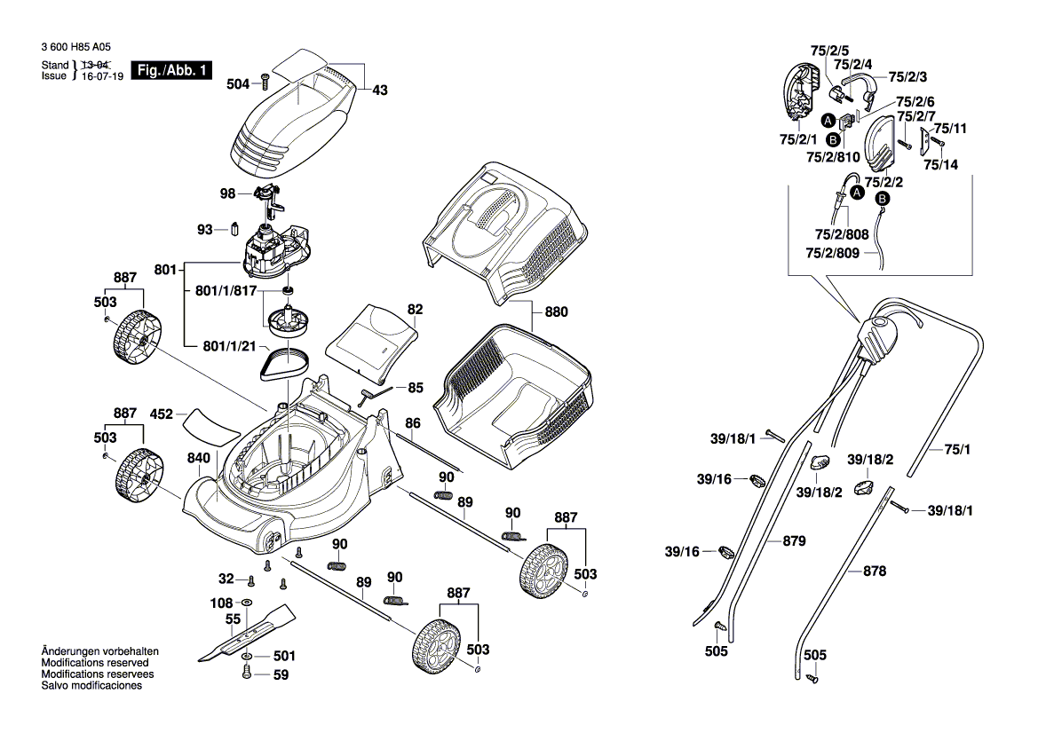 Zeichnungen von Bosch Rasenmäher ROTAK 320 mit der Geräte-Artikelnummer 3 600 H85 A04