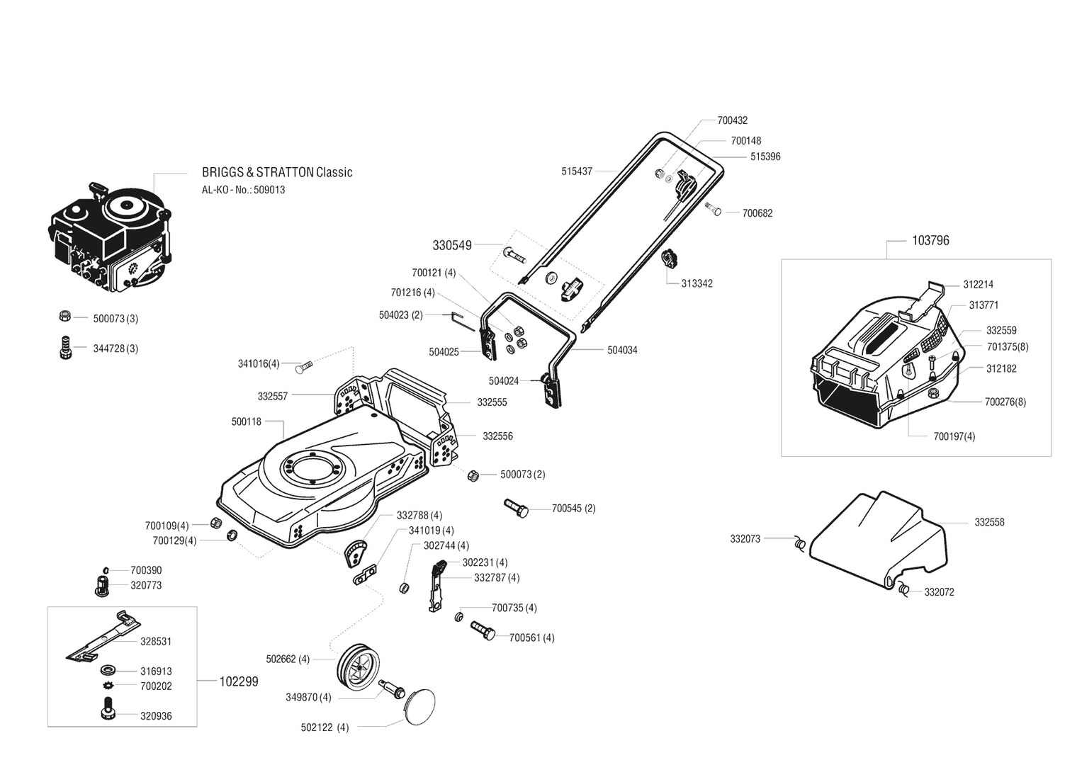 Zeichnungen von AL-KO Benzinrasenmäher Raset 48BH mit der Geräte-Artikelnr. 117076: