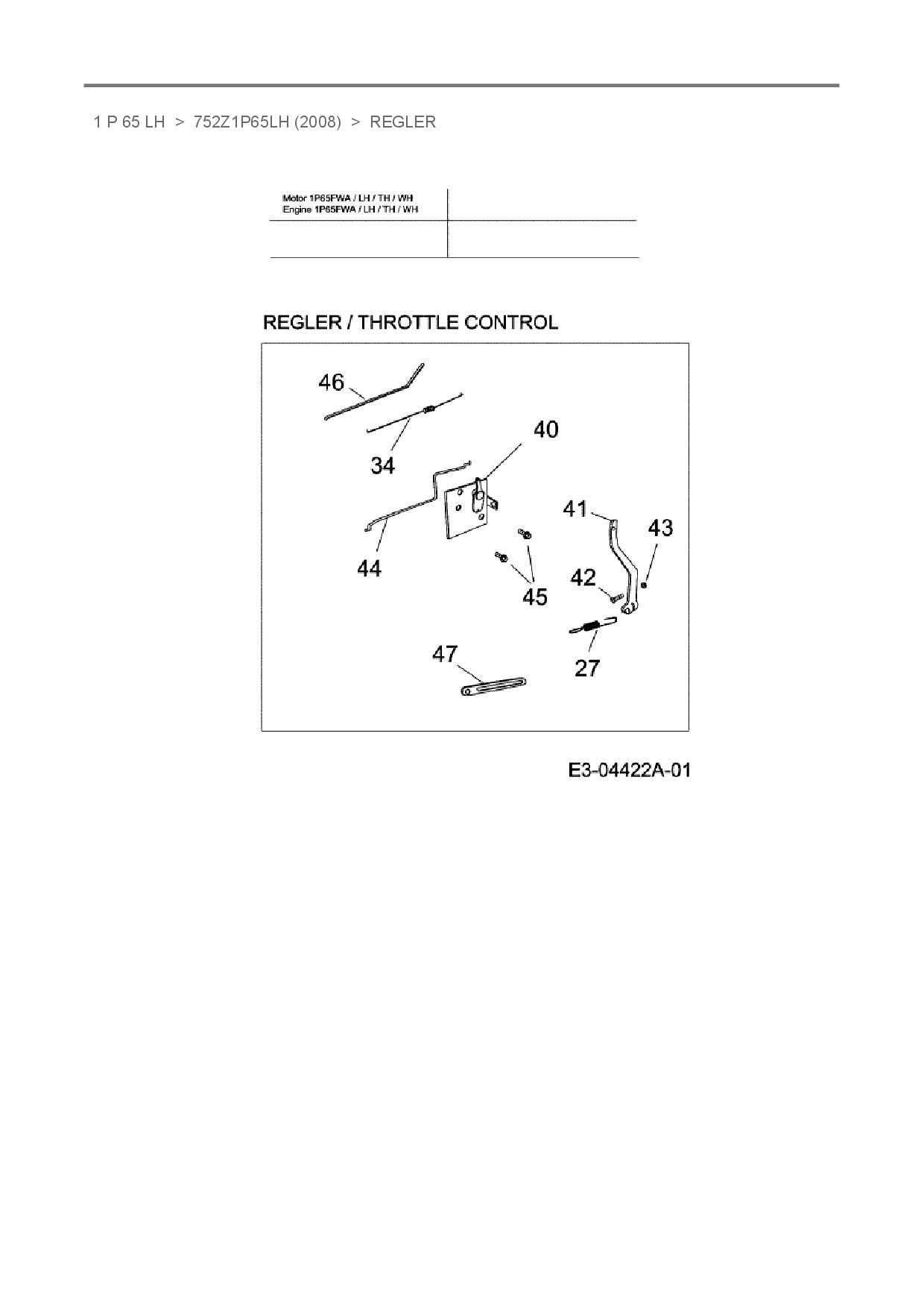 Ersatzteile für Vertikal MTD-Motoren 1 P 65 LH aus der Zeichnung Regler: