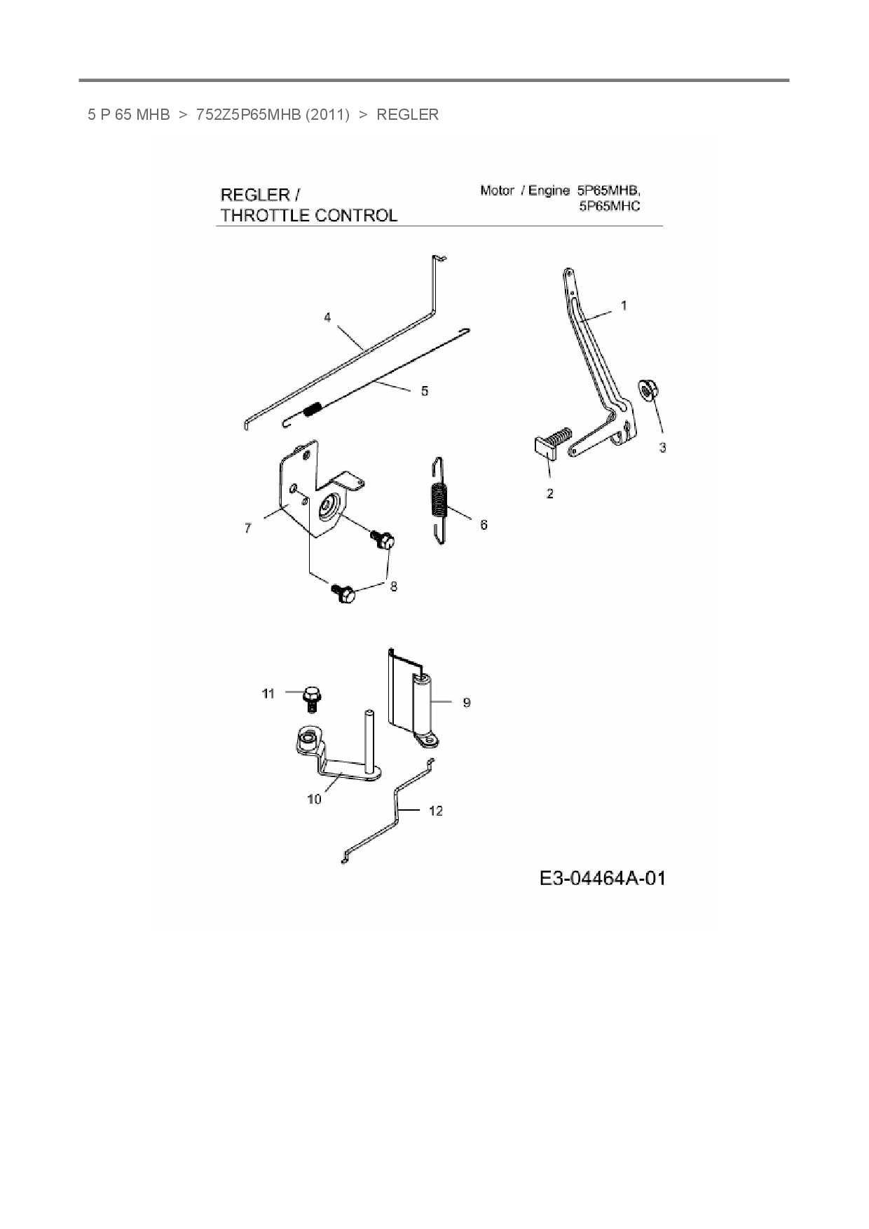Download Ersatzteil-Zeichnung MTD-Motoren 5 P 65 MHB Zeichnung Regler (PDF-Format)