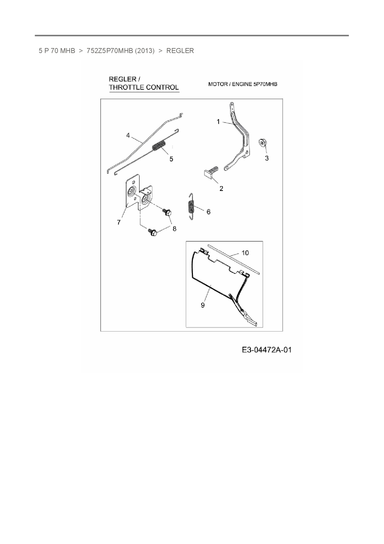Ersatzteile für Vertikal MTD-Motoren 5 P 70 MHB aus der Zeichnung Regler: