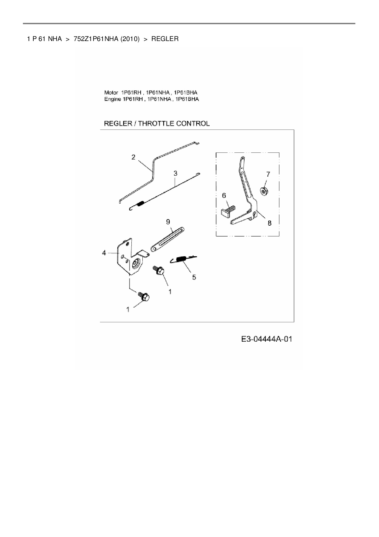 Ersatzteile für Benzinmotor MTD Wolf-Garten 1 P 61 NHA aus der Zeichnung Regler: