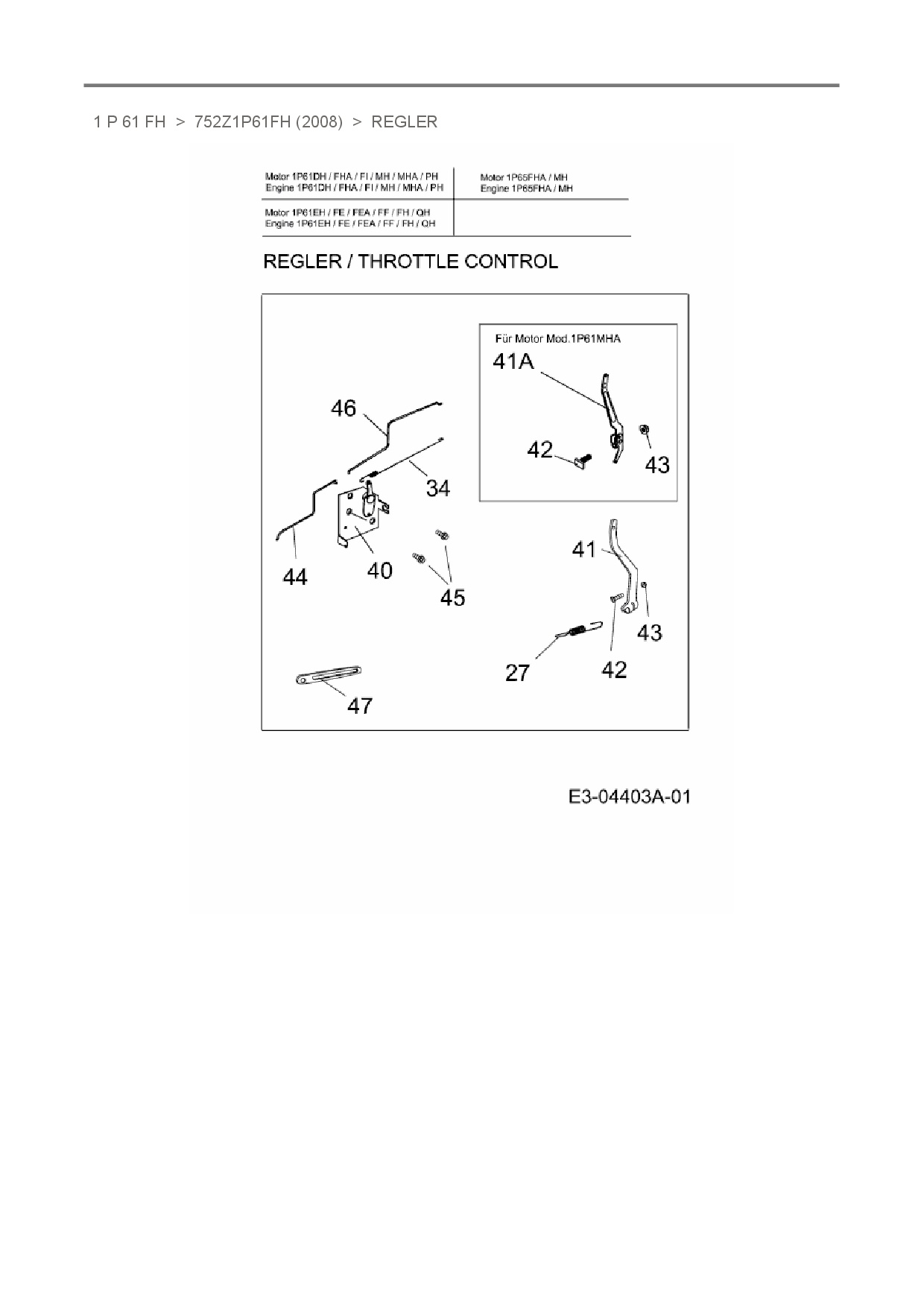 Ersatzteile für Vertikal MTD-Motoren 1 P 61 FH aus der Zeichnung Regler:
