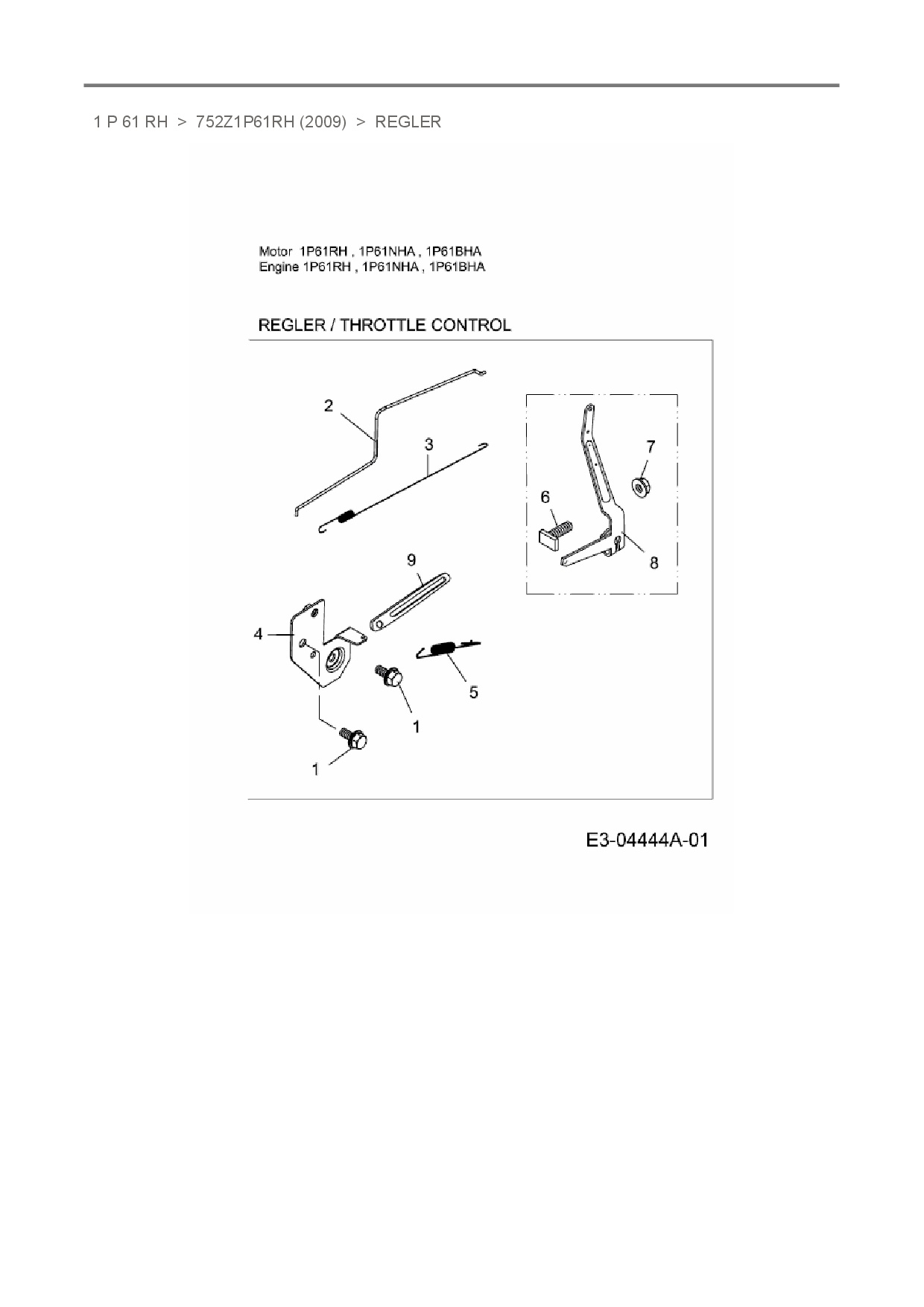 Ersatzteile für Vertikal MTD-Motoren 1 P 61 RH aus der Zeichnung Regler: