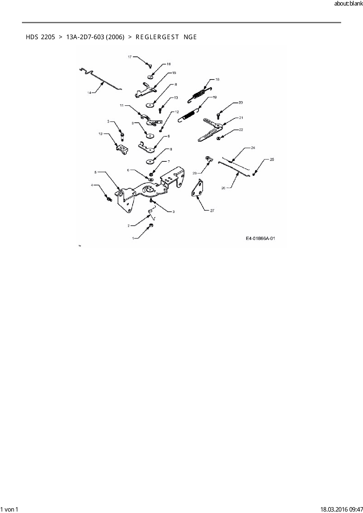 Ersatzteile für Rasentraktor Cub Cadet HDS 2205 aus der Zeichnung Reglergestänge: