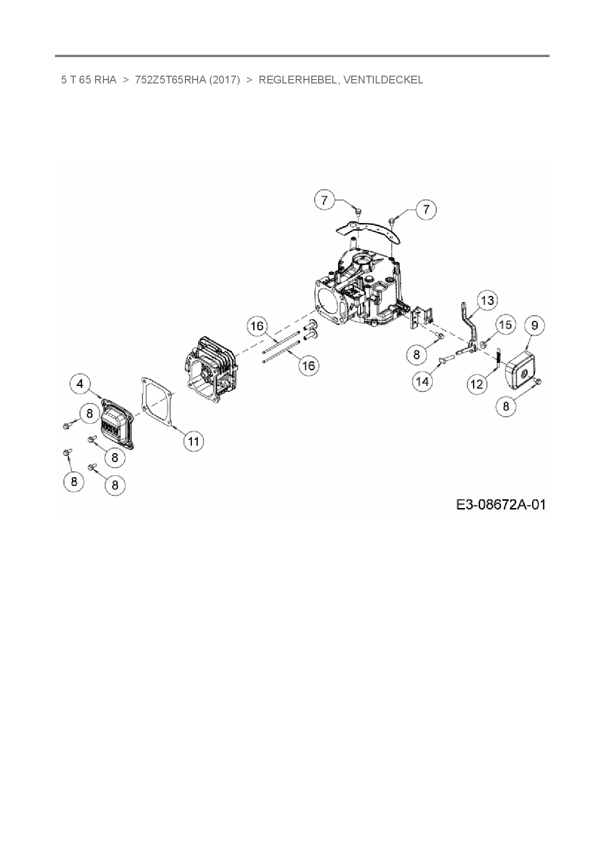 Ersatzteile für Vertikal MTD-Motoren 5 T 65 RHA aus der Zeichnung Reglerhebel, Ventildeckel: