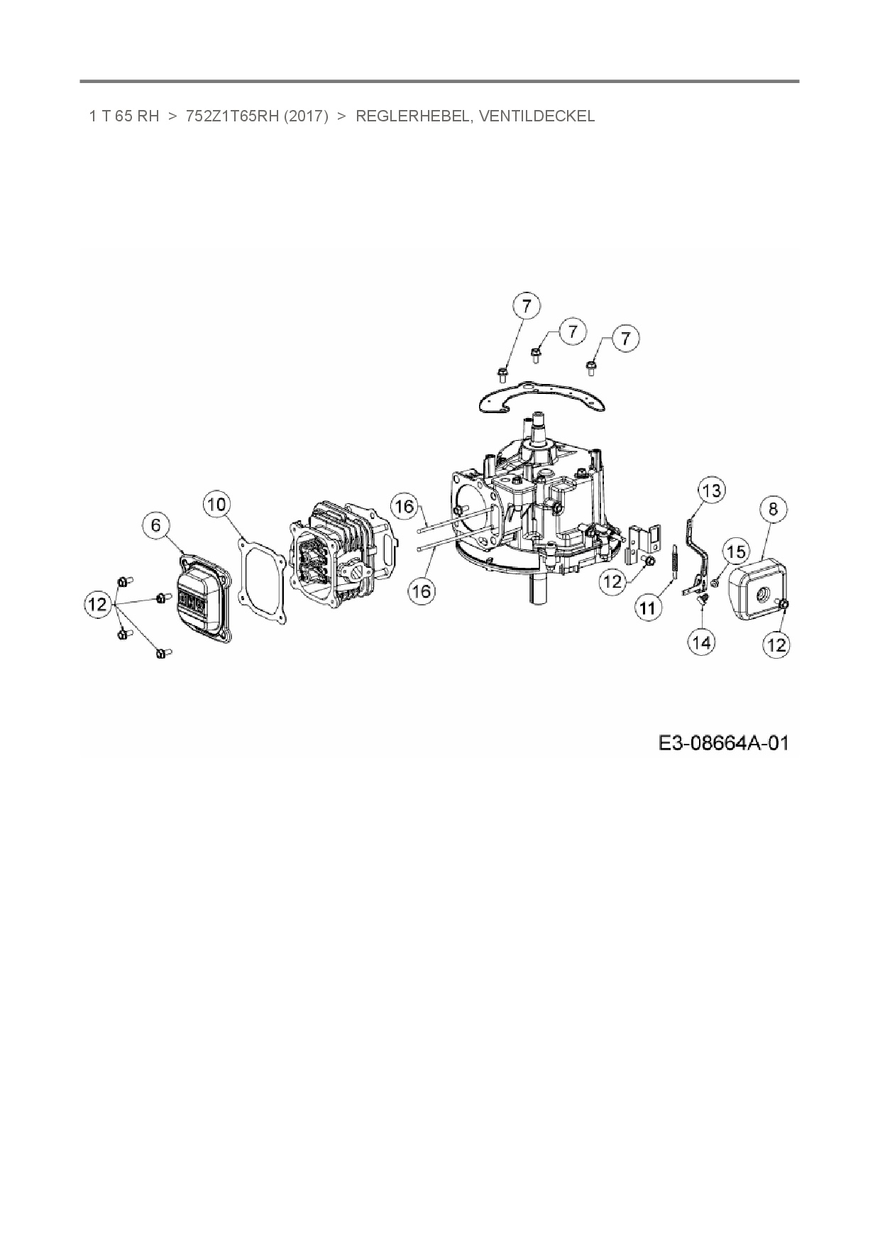 Ersatzteile für Vertikal MTD-Motoren 1 T 65 RH aus der Zeichnung Reglerhebel, Ventildeckel: