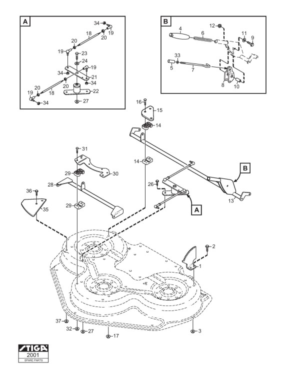 Zeichnungen von Stiga Frontaufsitzmäher Park Mähdecks mit Geräte Nr. 13-2931-41 ab Baujahr 2008