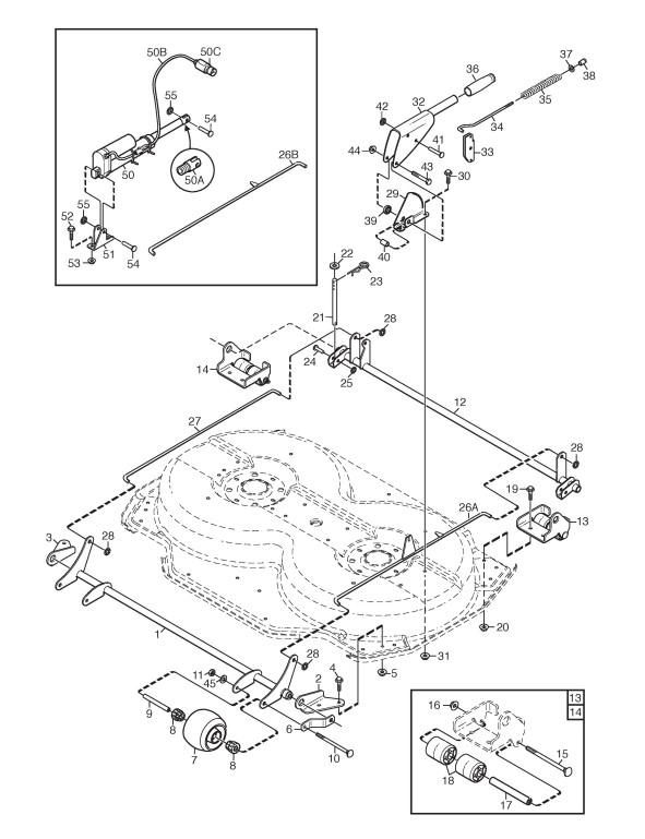 Zeichnungen von Stiga Frontaufsitzmäher Park Mähdecks mit Geräte Nr. 13-2972-34 ab Baujahr 2014