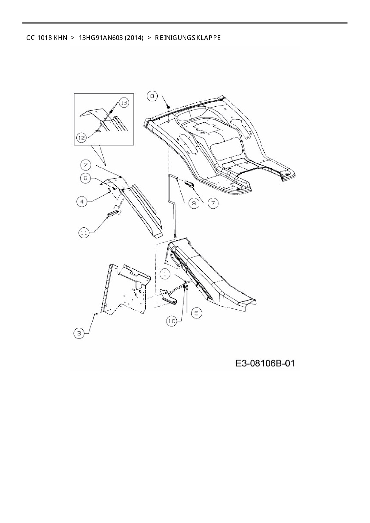 Ersatzteile für Rasentraktor Cub Cadet CC 1018 KHN aus der Zeichnung Reinigungsklappe: