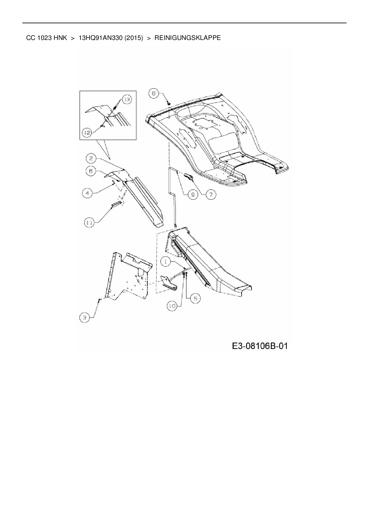 Ersatzteile für Rasentraktor Cub Cadet CC 1023 HNK aus der Zeichnung Reinigungsklappe: