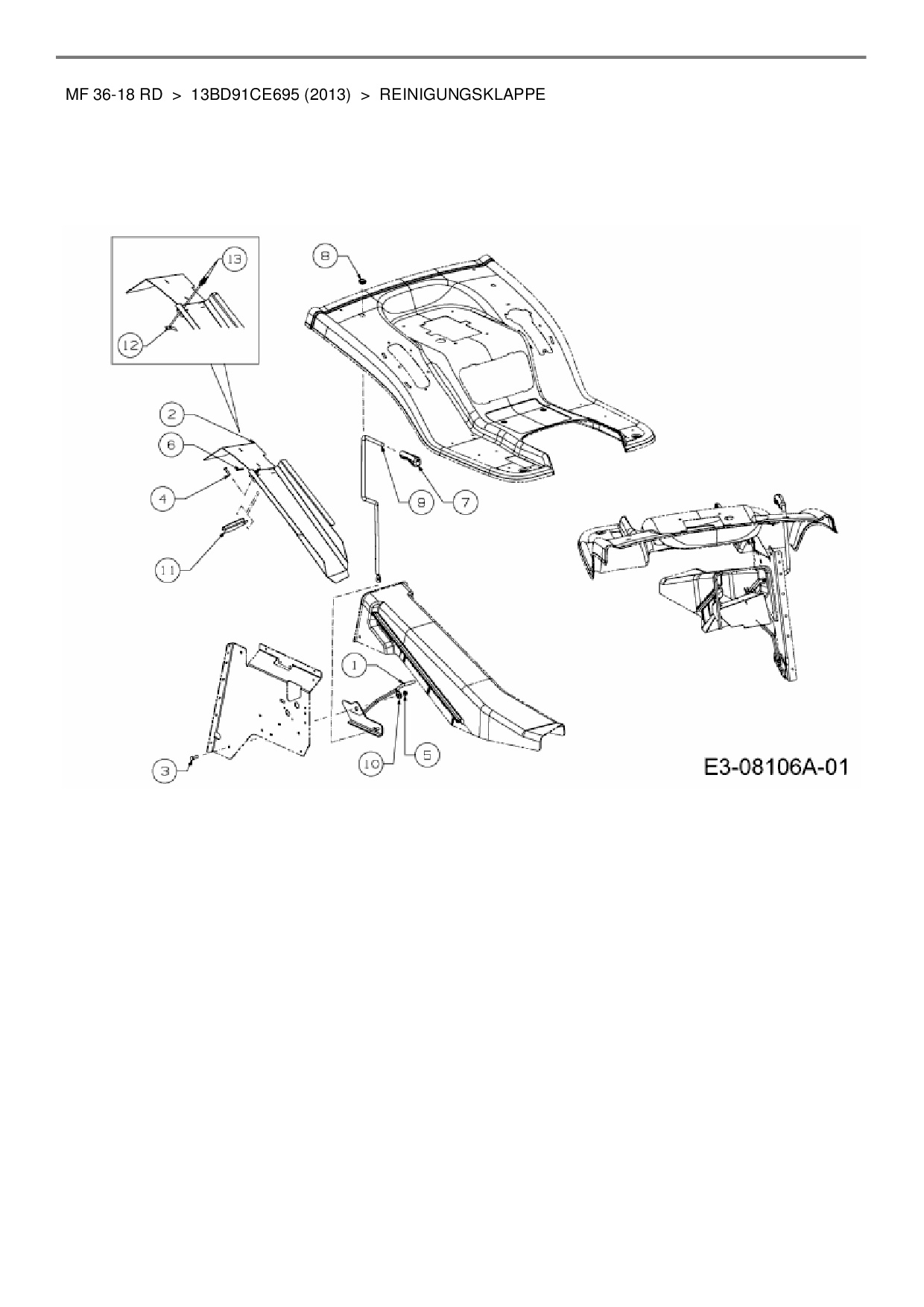 Ersatzteile für Rasentraktor Massey Ferguson MF 36-18 RD aus der Zeichnung Reinigungsklappe: