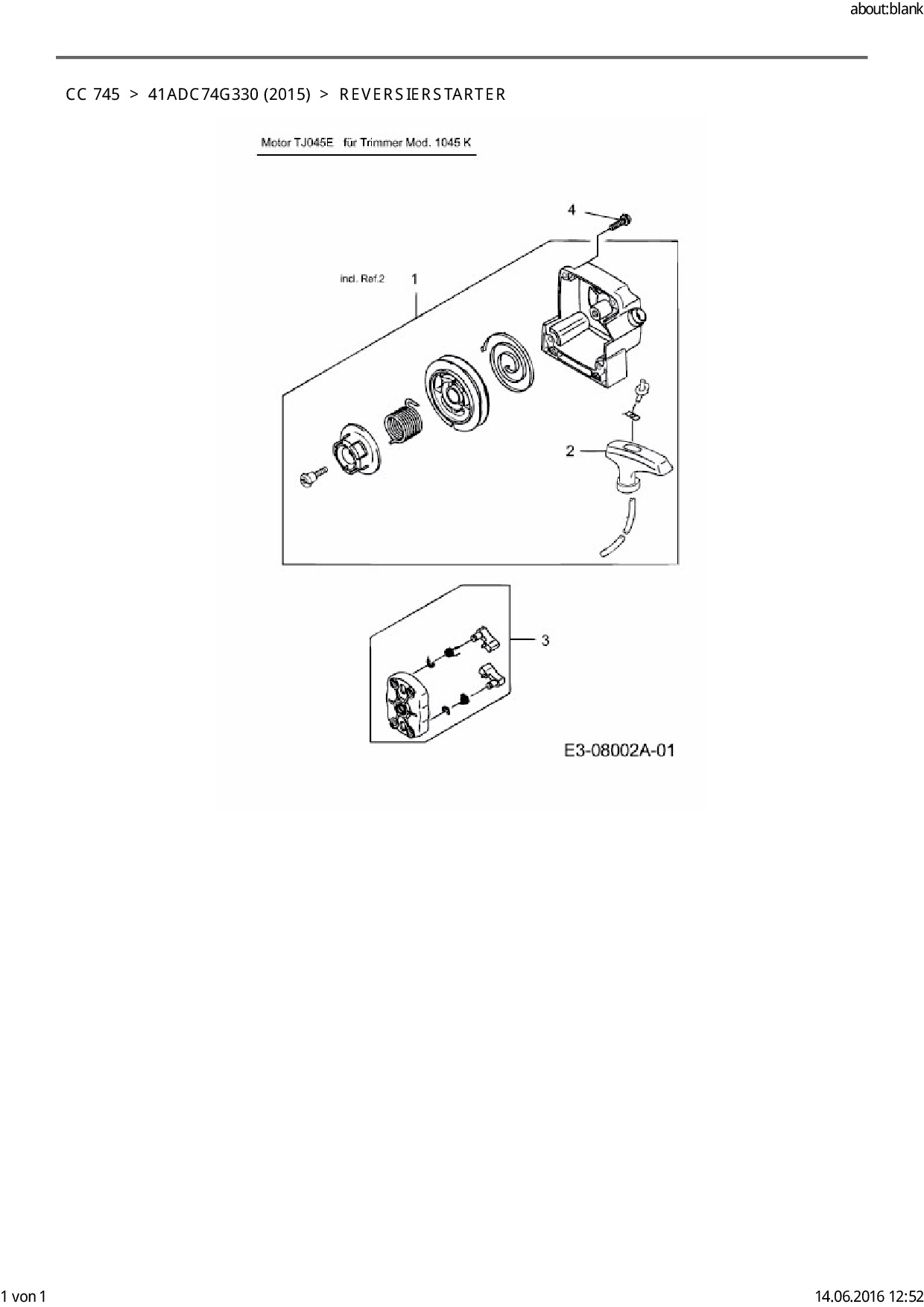 Ersatzteile für Motorsense Cub Cadet CC 745 aus der Zeichnung Reversierstarter: