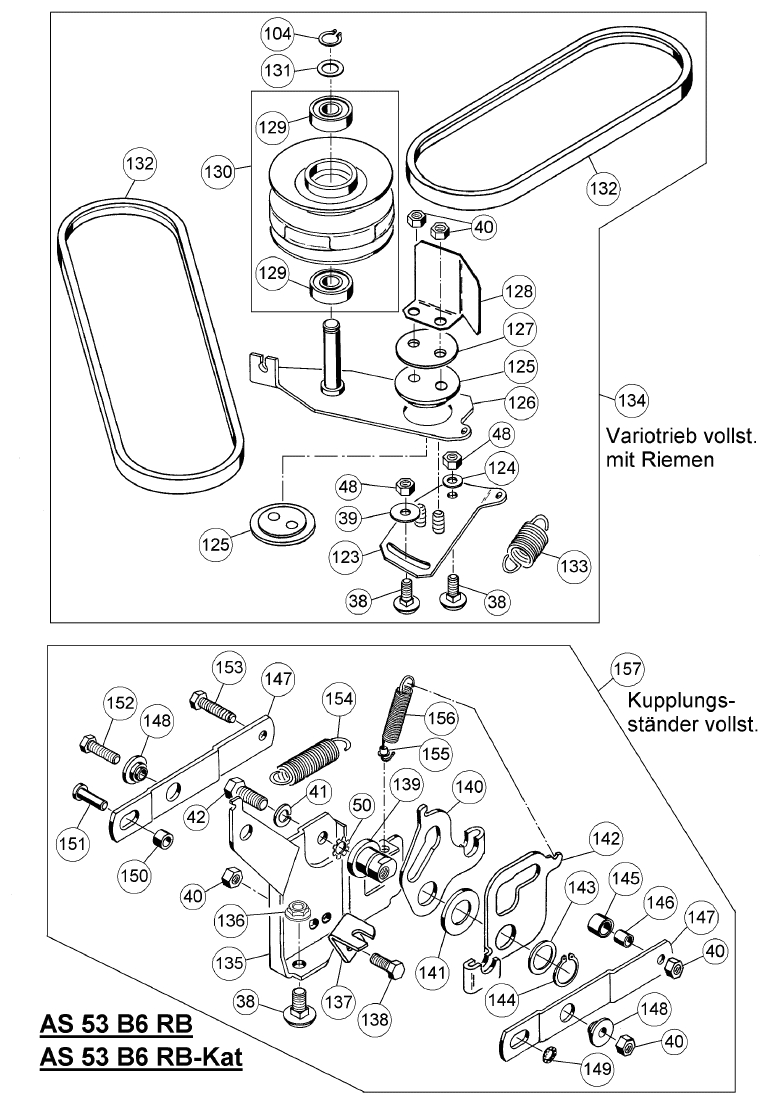 Hier finden Sie alle Ersatzteile von AS-Motor Profi-Rasenmäher AS 53 2T 4WD RB und AS 53 B6 RB-Kat ab FNr. 020913040001 aus dem Zeichnungsblatt Riemen + Kupplungsständer: