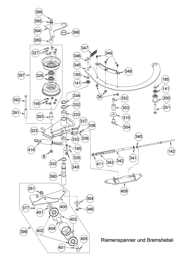 Riemenspanner und Bremshebel