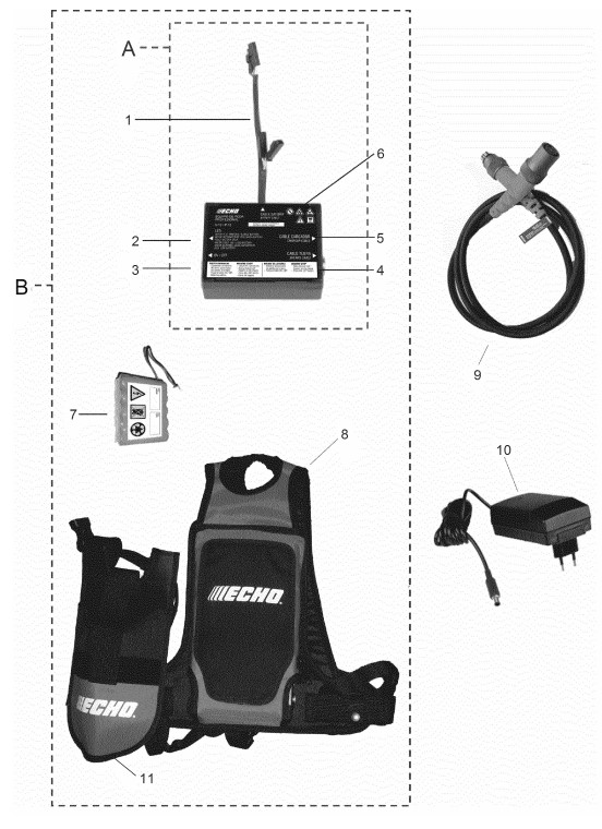 Zeichnung von ECHO Akku-Geräte P-10 Rucksack: