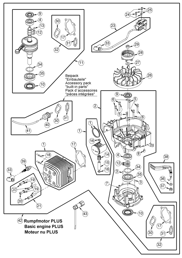 Hier finden Sie alle Ersatzteile von AS-Motor Profi-Rasenmäher AS 531 2T ES MK B ab FNr. 031217080001 aus dem Zeichnungsblatt Rumpfmotor PLUS: