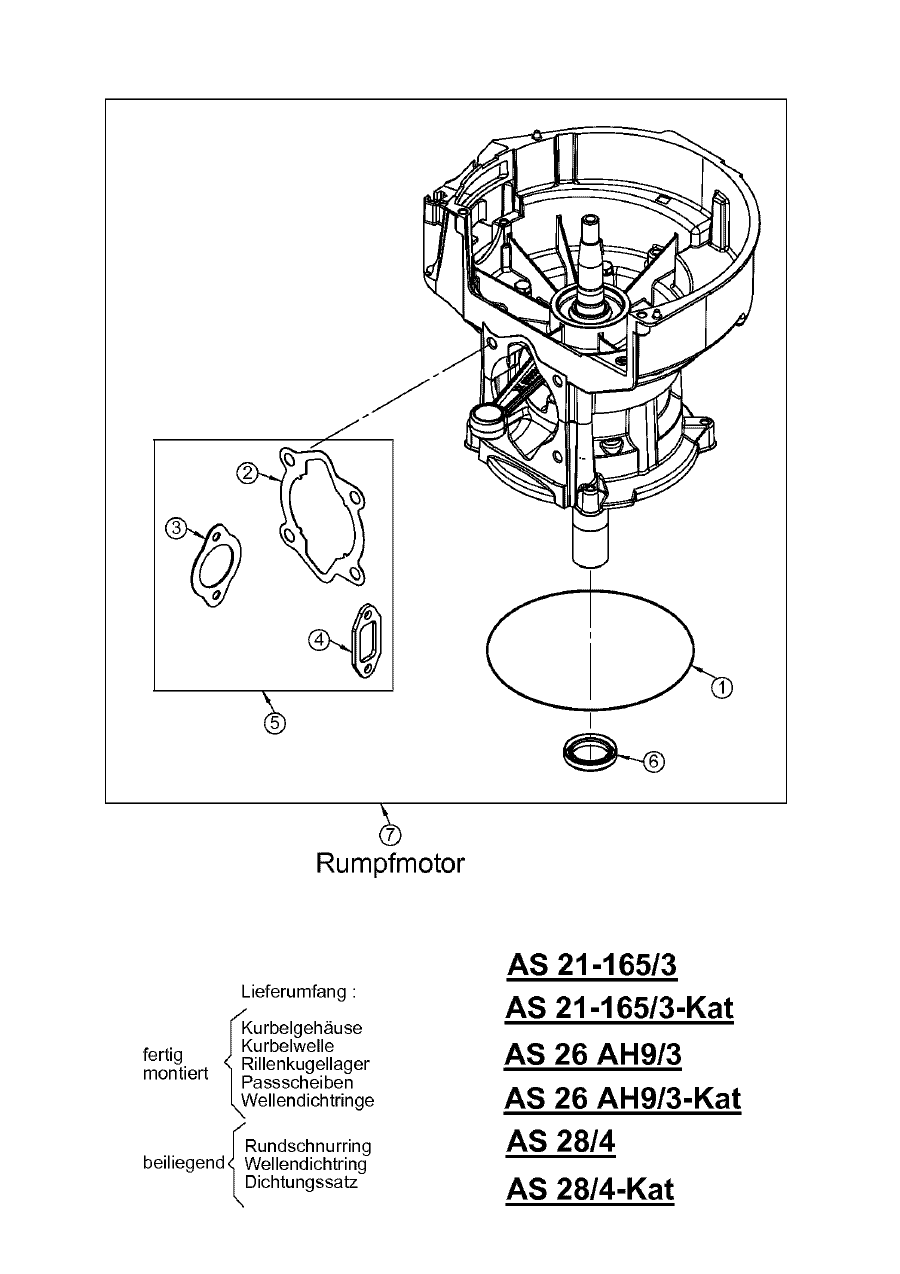Hier finden Sie alle Ersatzteile von AS-Motor Allmäher AS 26 2T und AS 26 AH9/3-Kat ab FNr. 020008020001 aus dem Zeichnungsblatt Rumpfmotor: