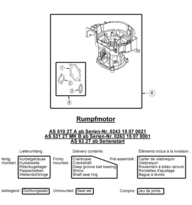 Hier finden Sie alle Ersatzteile von AS-Motor Allmäher AS 63 2T ES ab FNr. 027016020001 aus dem Zeichnungsblatt Rumpfmotor: