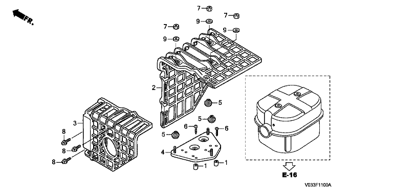 Ersatzteile für Honda Schneefräsen HS1180K1 ET (ET) Baugruppe SCHALLDAEMPFERSCHUTZ