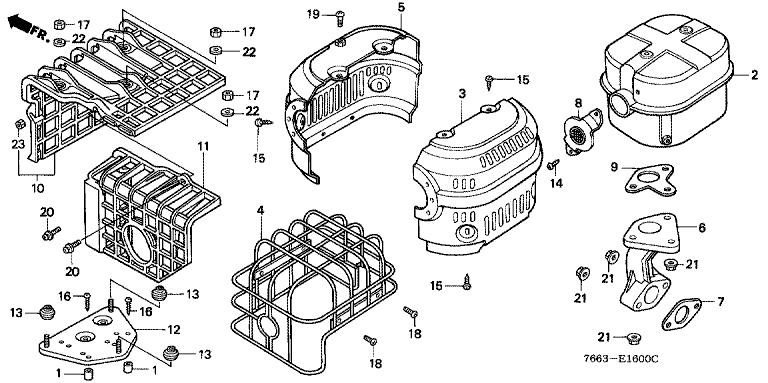 Ersatzteile für Honda Schneefräsen HS1136K1 G (G) Baugruppe SCHALLDAEMPFER
