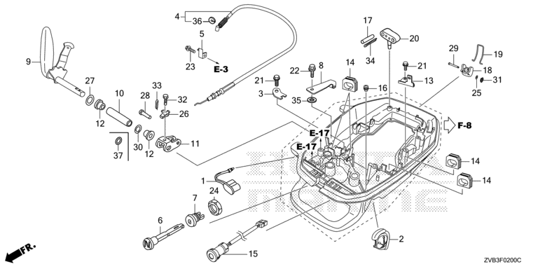 Ersatzteile für Honda Außenbordmotoren BF5DH LHU (LHU) Baugruppe SCHALTWELLE/ABDECKUNGS-SPERRHEBEL