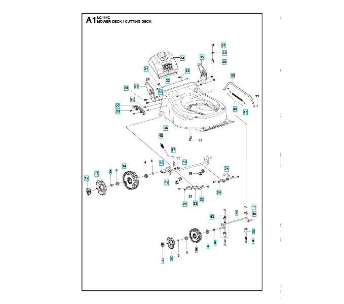 Zeichnung für Husqvarna Rasenmäher private Nutzung SCHNEIDWERK/MÄHDECK (1) Sollten Sie Fragen zu einem Ersatzteil von Husqvarna Rasenmäher private Nutzung LC141C haben, können Sie uns gerne eine Ersatzteilanfrage (mit einem Foto vom Typenschild Ihres Gerätes) stellen.