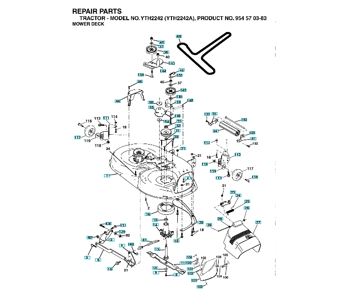 Sollten Sie Fragen zu einem Ersatzteil von YTH2242 ( A 954570383, 2003-01 ) haben, können Sie uns gerne eine Ersatzteilanfrage (mit einem Foto vom Typenschild Ihres Gerätes) stellen.