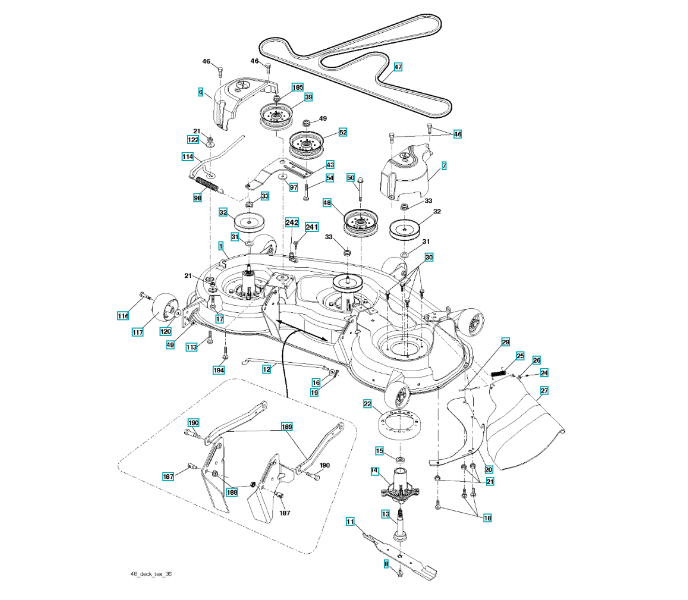 Ersatzteile für Husqvarna Gartentraktor YTH2348 ( 240440, 2010-12 ) SCHNEIDWERK/MÄHDECK:
