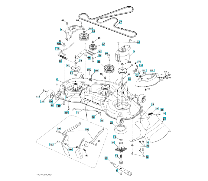 Ersatzteile für Husqvarna Gartentraktor YTH24K48 ( 96048005400, 2014-01 ) SCHNEIDWERK/MÄHDECK: