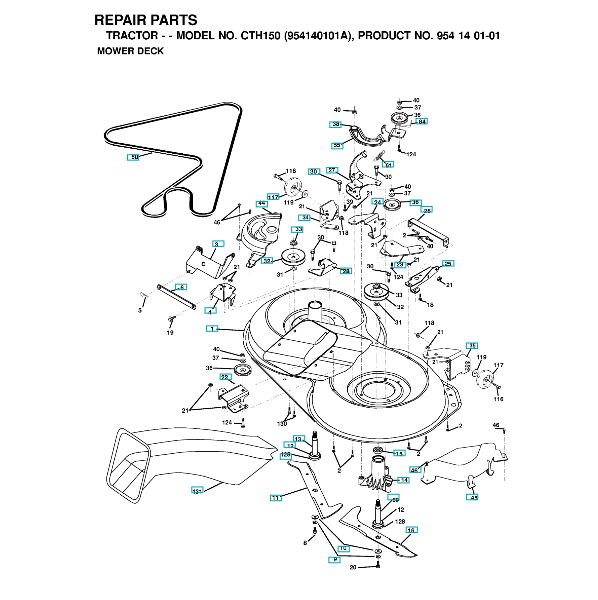 Ersatzteile für Husqvarna Gartentraktoren CTH150 ( 954140101A, 1999-10 ) SCHNEIDWERK/MÄHDECK: