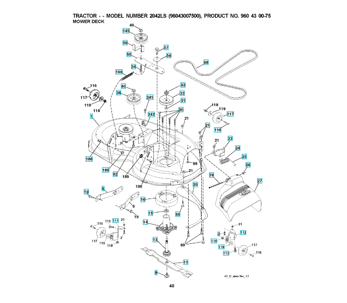 Zeichnung für Husqvarna Gartentraktoren 2042 LS ( 96043007500, 2008-11 ) SCHNEIDWERK/MÄHDECK Sollten Sie Fragen zu einem Ersatzteil von 2042 LS ( 96043007500, 2008-11 ) haben, können Sie uns gerne eine Ersatzteilanfrage (mit einem Foto vom Typenschild Ihres Gerätes) stellen.