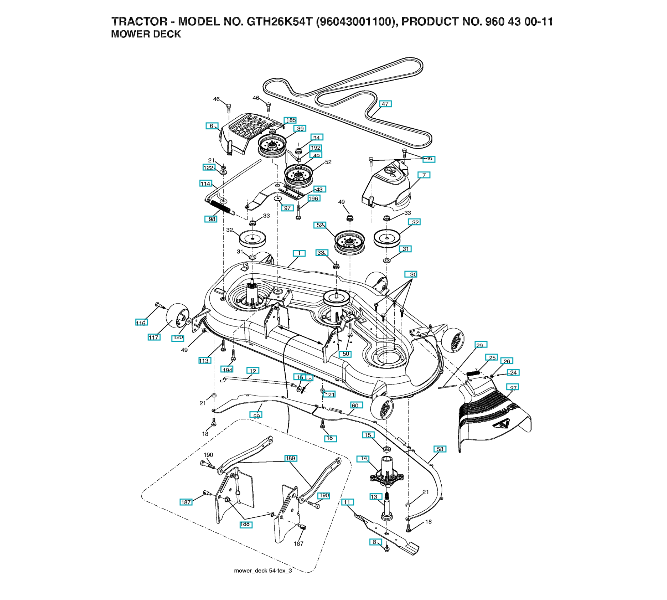 Ersatzteile für Husqvarna Gartentraktor GTH26K54 T ( 96043001100, 960430011, 2006-03 ) SCHNEIDWERK/MÄHDECK: