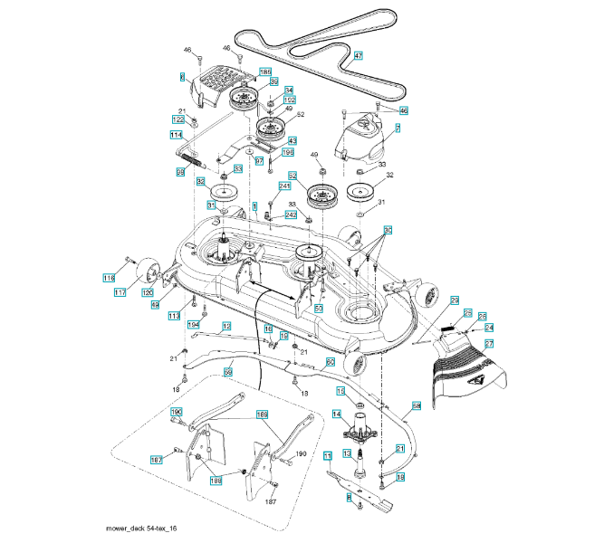 Ersatzteile für Husqvarna Gartentraktor LGT2554 ( 96045002800, 2010-11 ) SCHNEIDWERK/MÄHDECK: