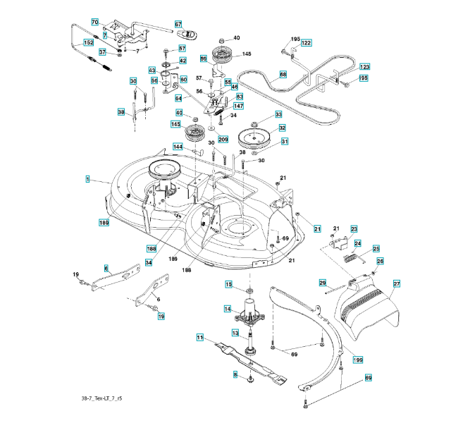 Zeichnung für Husqvarna Gartentraktor LT151 ( 96041001707, 2008-09 ) SCHNEIDWERK/MÄHDECK
