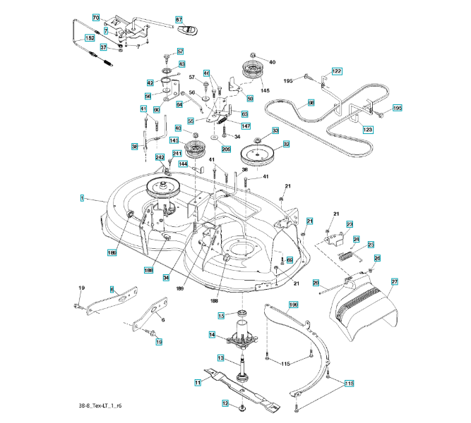 Zeichnung für Husqvarna Gartentraktor LT19538R ( 96041028202, 2014-05 ) SCHNEIDWERK/MÄHDECK