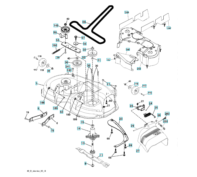 Ersatzteile für Husqvarna Gartentraktor LTH174 ( 96041024500, 2011-12 ) SCHNEIDWERK/MÄHDECK:
