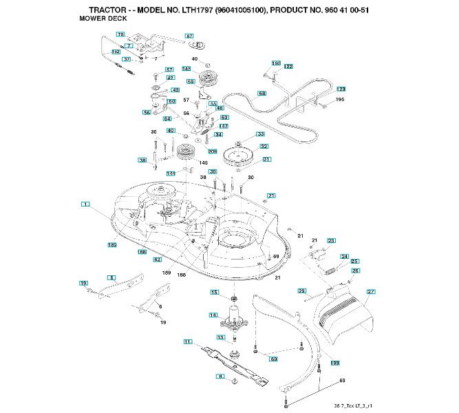 Ersatzteile für Husqvarna Gartentraktor LTH1797 ( 96041005100, 2007-04 ) SCHNEIDWERK/MÄHDECK: