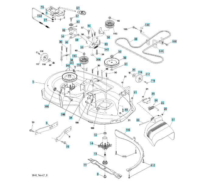 Folgende Ersatzteile für Husqvarna Gartentraktor LTH2038 ( 96043014501, 2013-03 ) SCHNEIDWERK/MÄHDECK können Sie hier bestellen: