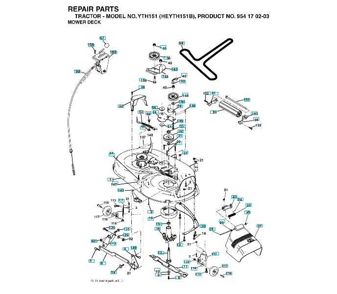 Folgende Ersatzteile für Husqvarna Gartentraktor YTH151 ( HEYTH151B, 954170203, 2004-09 ) SCHNEIDWERK/MÄHDECK können Sie hier bestellen: