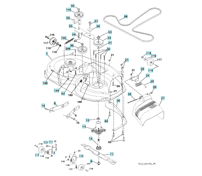 Folgende Ersatzteile für Husqvarna Gartentraktor YTH2042TD ( 96041005405, 2013-02 ) SCHNEIDWERK/MÄHDECK können Sie hier bestellen: