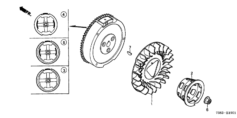 Ersatzteile für Honda Schneefräsen HS80 TLS (TLS) Baugruppe SCHWUNGRAD (HS80/K1)