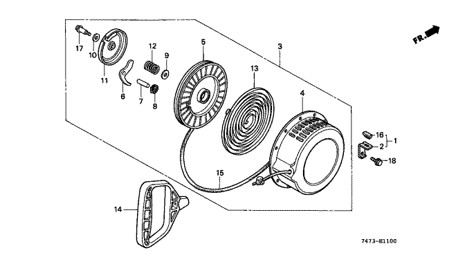 Ersatzteile für Honda Schneefräsen HS521K1 H (H) Baugruppe SEILZUGSTARTER (1)