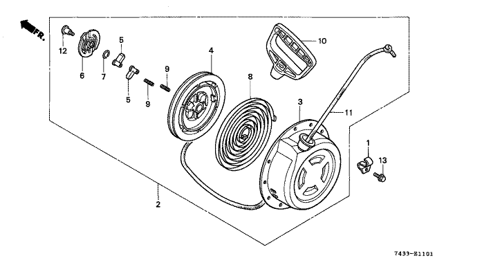 Ersatzteile für Honda Schneefräsen HS622K1 HTS (HTS/A) Baugruppe SEILZUGSTARTER (2)