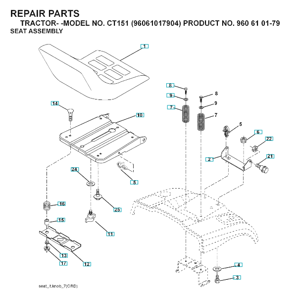 Zeichnung für Husqvarna Gartentraktoren CT151 ( 96061017904, 2007-06 ) SITZ Sollten Sie Fragen zu einem Ersatzteil von CT151 ( 96061017904, 2007-06 ) haben, können Sie uns gerne eine Ersatzteilanfrage (mit einem Foto vom Typenschild Ihres Gerätes) stellen.
