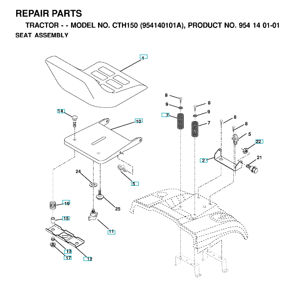 Ersatzteile für Husqvarna Gartentraktoren CTH150 ( 954140101A, 1999-10 ) SITZ: