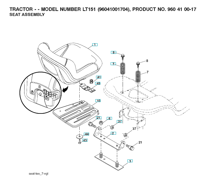Ersatzteile für Husqvarna Gartentraktor LT151 ( 96041001704, 2007-05 ) SITZ: